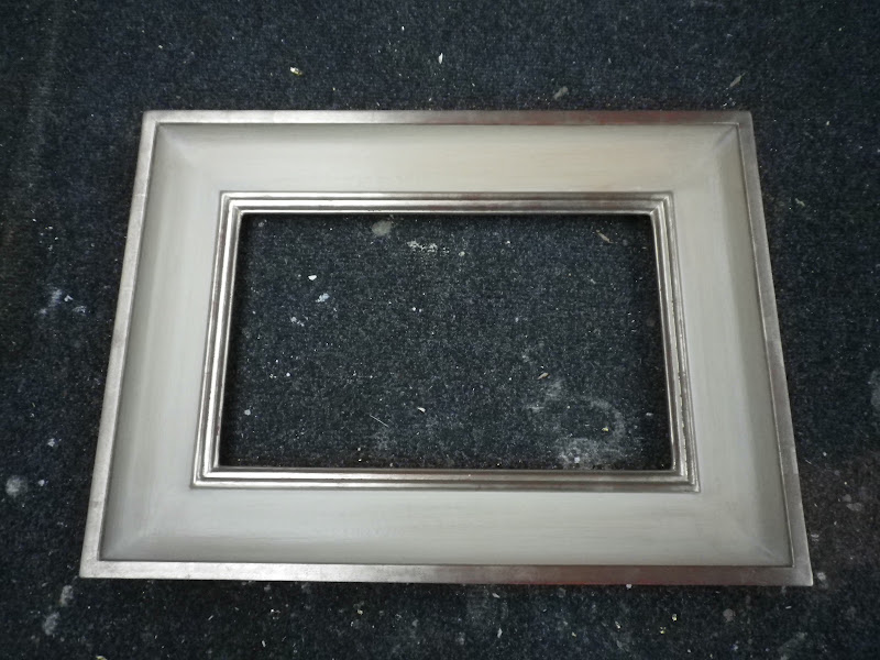An easy to do finish of rubbed through bronze powder over red, the centre panel is thin paint over bronze powder which shows through the paint, although this is not visible in the photo. The whole frame was then sealed with an acrylic varnish.