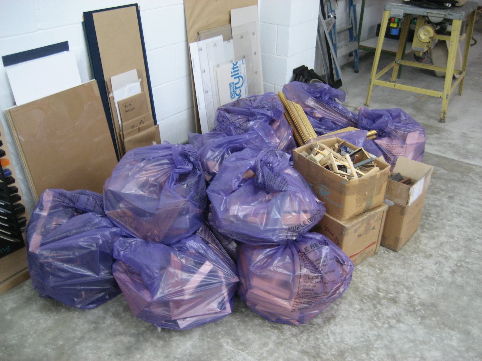 This pile of bin bags is all my frame corner samples, waiting to be sorted out and put on the walls in the reception room, realistically I can't see this being done for 2 or 3 weeks.